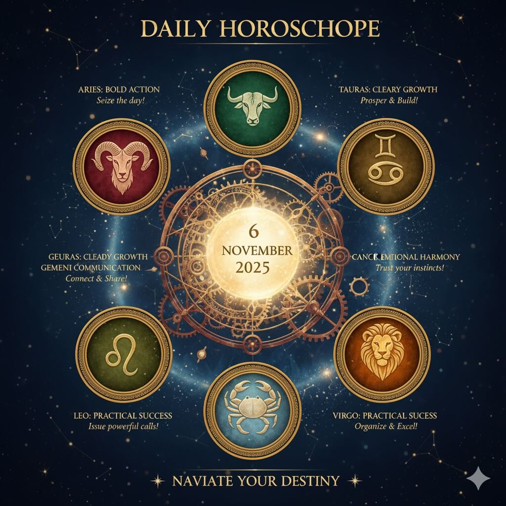 आज 6 नवंबर 2025 के राशि भविष्यफल में ग्रहों का शुभ संयोग अनेक अवसर—सकारात्मक व चुनौतीपूर्ण—प्रस्तुत करता है। ईमानदारी, धैर्य और सकारात्मकता हर राशि के लिए लाभकारी सिद्ध होगी। धर्म, ध्यान और दान आपके दिन को सफल बनाएंगे। सभी के लिए शुभकामना। Aaj ka Rashifal 6 november 2025